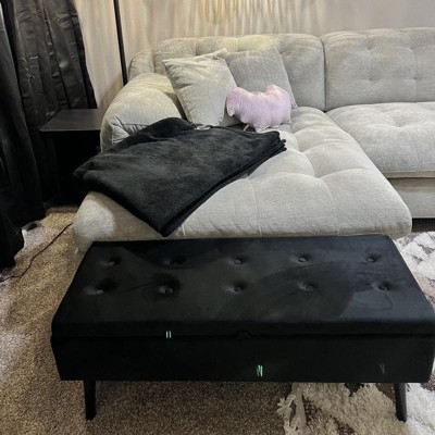 Stylish and practical, the Caine storage bench expands the potential of any interior space. Made in China, this bench is comprised of a sturdy wood frame padded with foam and upholstered in sumptuous velvet fabric. The button-tufted cushion opens to reveal a spacious storage compartment for extra pillows, blankets, and more. Requiring assembly, the Caine utilized angled legs for excellent stability and support while lending a traditional feel. A wonderful addition to a living room, bedroom, or entryway, the Caine storage bench enhances any space.