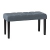 Enjoy this entryway bench which offers plenty of extra seating space for your home. Featuring a foam padded surface finished with topstitching and stylish tufting. The soft fabric is complimented by dark stained wood legs for durability and style. This multi-functional seat provides a practical solution for entryways, living rooms, or bedrooms alike.