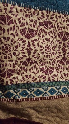 [This review was collected as part of a promotion.] Just wanted to say that I did receive this item in exchange for my review. With that being said the quilt is gorgeous!! The colors and print are beautiful and just enough warmth to keep me comfortable. Highly recommended.
