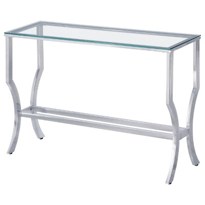 Calloun Glam 2 Shelf Sofa Table Chrome - HOMES: Inside + Out: Oval, Tempered Glass, Metal Frame