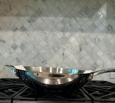 [This review was collected as part of a promotion.] Stunning piece of cookware and such a versatile addition to my kitchen. The stainless steel finish is beautiful inside and out. Feels solid and high quality. Although large, it’s not too heavy, and the additional smaller handle makes this easy to maneuver while cooking. Love that it is both oven safe and dishwasher safe as well. My only complaint is that this does not come with a lid! Had to knock a star for that.