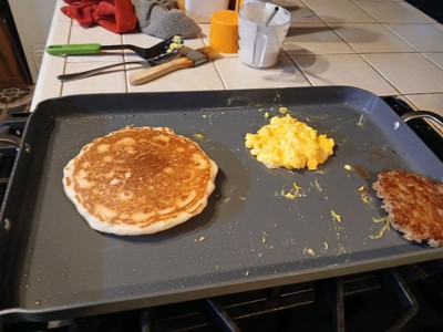 Have always wanted a griddle to be able to do large batches of French toast, bacon, etc. Glad I made the investment-it’s worth it! Nonstick finish is awesome and the handles are positioned just right, too.
