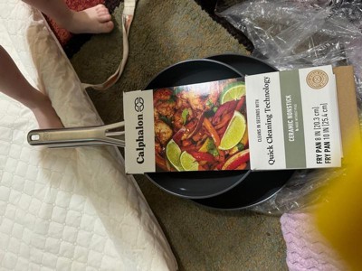Calphalon Ceramic Fry Pan Combo Silver Ash: Nonstick, Anodized Aluminum, Oven & Dishwasher Safe, 8" Diameter, 2-Piece Set