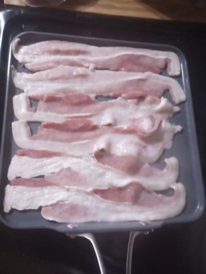 [This review was collected as part of a promotion.] Heavy duty and cooks evenly. Big enough to lay bacon in perfectly, and so easy to clean just wipe it out!! I definitely wish I had a set of these I highly recommend this to everyone !!