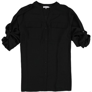 Calvin Klein Womens Chest Pockets Button Down Blouse, black, 1X