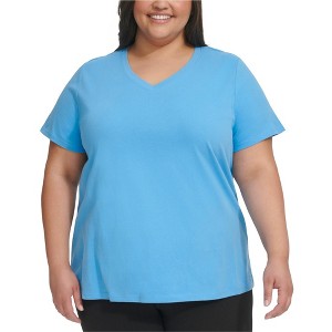 Calvin Klein Womens Solid Basic T-Shirt, azure, 1X