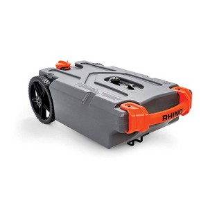 - RV Tote Tank Features: Rhino’s 21-Gallon Tote Tank is equipped with (2) oversized wheels, a large handle, tank rinser, and ladder hook.