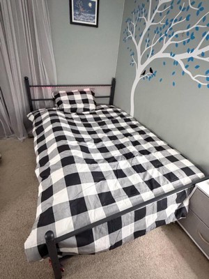 [This review was collected as part of a promotion.] Got this comforter set for my teenage son’s room and he absolutely loved the checkered black and white print and reversible gray stripe print. It’s soft and mid weight, perfect for Texas nights. Unfortunately the quality was disappointing :/ after two weeks of use and only one wash, it had a tear in the fabric in one spot and a scratch in another despite being washed and dried on delicate.