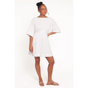 Make a memorable entrance in the Camila Open Back Mini Dress. This white mini features a sophisticated boat neckline and charming mid-length flare sleeves, creating a beautifully balanced silhouette.