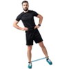 Lightweight, compact and portable, the tubing exerciser helps perform strengthening and conditioning workouts on-the-go, even in your hotel room! Continuous tubing loop has two padded ankle/wrist cuffs. The exerciser is preassembled and has a circumference of 35". CanDo is licensed to use the Thera-Band color sequence so resistance level is easily identified. The tubing with cuff exerciser is available in 7 levels of resistance for progressive exercise and 3 lengths to accommodate different needs. Levels range in order of strength from least to greatest resistance: tan, yellow, red, green, blue, black, silver. Length represents length of tubing from end to end when unit is laid flat and is taut. CanDo low powder exercise tubing is made of natural rubber latex, which may cause allergic reactions.