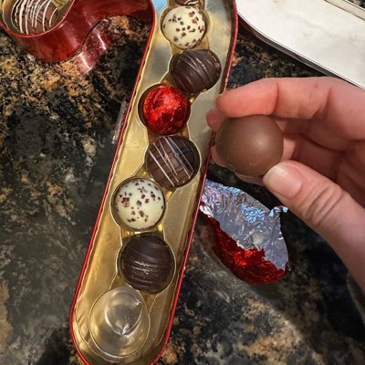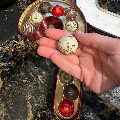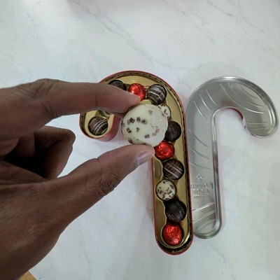 [This review was collected as part of a promotion.] This Candy Cane Tin Gift Basket is absolutely perfect for the holiday season! The packaging is beautiful and festive - it looks so nice that you can gift it as-is without needing any extra wrapping. The mix of milk, white, and dark chocolate truffles is delicious, and the presentation makes it feel really special. such a cute , thoughtful and ready to gift for anyone !