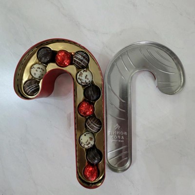 [This review was collected as part of a promotion.] The quality of these candies is outstanding. Filled with the best and most tasteful chocolate ever. This would make a great gift for a candy lover! The tin in which it comes is very nice and speaks of quality right out of the box. Comes in a box that is easy to wrap as a gift. There are a variety of delicious candy balls included in the gift box/tin candycane. If you want a quality candy gift, this would be perfect.