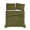 [This review was collected as part of a promotion.] This comforter has a nice feel to it. It's not too thick or too thin. I like this olive green color for my basic room. It included the comfort and two standard shams.