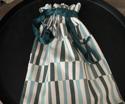 I love these type of gift bags since it looks good and is versatile. Can be used for gifts and reused to carry necessities. The generic design makes this bag good for any occasion. The strings/channel is a good size and allowed for ease of use to tighten and loosen closure