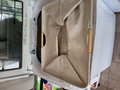 My previous laundry baskets were always tall and narrow. This one is short but wide. Just to let you know, it takes up a bit of space, Well made, and it has a crunchy sound to it. So if you have a cat, beware. My cat stole it from me and it's her crunchy sounding bed now.