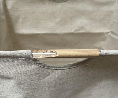 I’m loving this hamper. I was concerned about it breaking or not standing alone. So far no issues, it actually looks better than expected. Yes it comes out the pack a little wrinkled you can steam it but the color makes it look worth more. I placed a clean hand towel spread out at the base of mine for that propped look, for the people saying theirs didn’t stand. This actually holds a good size load for those that don’t like clothes lying around too long, when it’s full I’ll know it’s time to do a load.