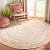 Introducing our exquisite handwoven round area rug, a testament to the rich textile craftsmanship of India. Crafted with an equal blend of natural jute and soft cotton, this 10' X 10' rug embodies durability and comfort, perfect for any living space.