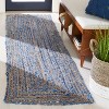 Crafted in India with the combined allure of natural jute and soft cotton, this runner is as resilient as it is comfortable underfoot. The stylish blue and natural colors intertwine in a distinctive pattern, reminiscent of concentric rectangles that create an illusion of depth and space, drawing in the eye and adding an element of sophistication to your decor.