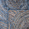 This rug features a harmonious blend of rich blue and natural tones, creating a serene and inviting atmosphere in your room. The spiraling pattern of overlapping circles radiates a sense of calm and continuity, making it a perfect anchor for your furniture.