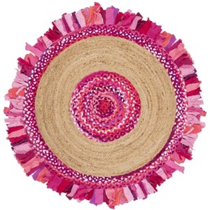 Cape Cod CAP701 Handmade Woven Accent Rug - Pink/Natural - 3' X 3' Round - Safavieh