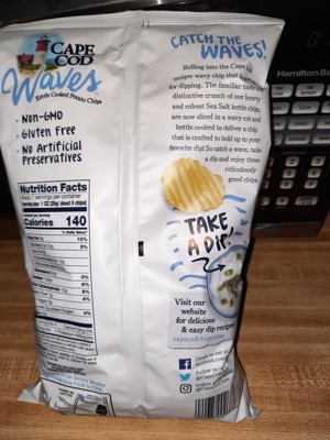Try the extra crunchy ridges and delectable flavor of Cape Cod Waves Original potato chips. Made with choice potatoes that are sliced in a wavy cut, these chips are then kettle cooked to deliver a ridged chip that is extra crunchy and full of flavor. The unique wave shape of these kettle chips is crafted to hold up to dip.