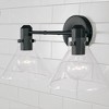 A modern take on midcentury style, the Greer 2-Light Vanity brings understated style to any bathroom. The faceted socket and rivet details in Aged Brass adds a pop of personality to the tapered glass. Also available in a 3-Light. DIMENSIONS: Overall: 18.25"W x 9"H x 10"E; Backplate: 5"W x 5"H x 1"E DETAILS: Cone-shaped clear glass complements the faceted socket holder and bold rivet detail. FINISH: Smooth to touch, the Aged Brass finish is a warm, honey-gold with subtle black undertones. The scouring technique creates a brushed visual texture and creates a refined, aged look. BULBS: Designed to be dimmable and LED/CFL/Incandescent bulb compatible, this fixture uses 2 - 100 Watt (max) E26 Medium base bulbs (not included). It's shown here with a G25 lamp. FEATURES: Rated for Damp locations; includes a 1-Year Manufacturer Warranty. Mounting Direction: Up or Down Back Plate Height: 5.00 Back Plate Width: 5.00 Shade Included: Yes Shade Dimensions: 8 x 6