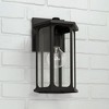 Create a well-rounded welcome with the Walton Small Wall Lantern. The Black finish accents the soft curves and hexagonal shape for a fresh take on traditional forms. Part of our Rain or Shine Collection and backedby our five-year warranty. DIMENSIONS: Overall: 8"W x 13.25"H; Backplate: 6"W x 6"H x 0.75"E DETAILS: The hexagonal shape and rounded edges paired with Clear Glass panels create a classic and clean look. Bottom is open for easy access to bulb. FINISH: Part of the Rain or Shine series, the Black finish is a neutral, dark tone with a slightly coarse texture. BULBS: Designed to be dimmable and LED/CFL/Incandescent bulb compatible, this fixture uses 1 - 100 Watt (max) E26 Medium base bulbs (not included). It's shown here with a G25 lamp. FEATURES: Rated for Wet locations; includes a 5-Year Manufacturer Warranty Against Rust and Fading. Mounting Direction: Down Back Plate Height: 6.00 Back Plate Width: 6.00 Shade Included: Yes Shade Dimensions: 2.75 x 10.5