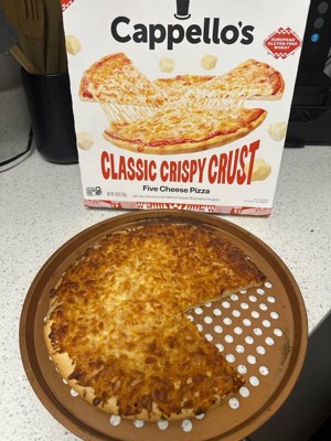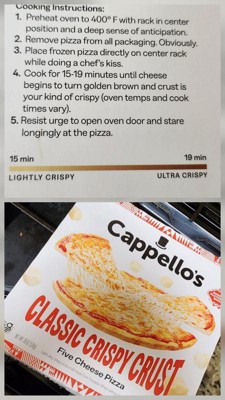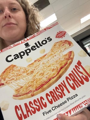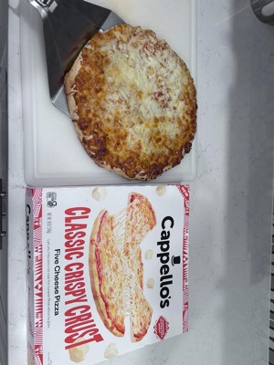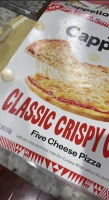 [This review was collected as part of a promotion.] Cappello's Classic Crispy Crust Five Cheese Pizza boasts a flavorful gluten-free crust made with wheat starch, mozzarella, tomatoes, five cheeses like white cheddar and parmesan, olive oil, and herbs. Baked at four hundred degrees for fifteen minutes, it turns golden with bubbly cheese and very crunchy, airy texture as shown in photos 🍕 great for crisp fans, less so for soft crust lovers. Rich cheese and tangy sauce make this 18oz. frozen pizza a quick meal, free of seed oils.