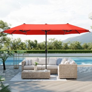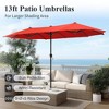 Enhance your outdoor gatherings with our 13ft Double-Sided Patio Umbrella in Haze Blue. Ideal for patios, beaches, or poolside, it offers maximum sun coverage and style. The user-friendly crank handle allows for easy setup, and its lightweight design fits long tables or side furniture. Made from rust-resistant steel with 12 sturdy ribs, this umbrella withstands the elements, while the fade-resistant polyester maintains its elegance. Available in various colors like Light Gray, Beige, Mint Green, and Navy Blue, it’s perfect for complementing your outdoor décor. Enjoy ample coverage and lasting quality for memorable moments outdoors!