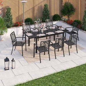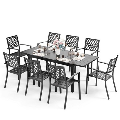 Captiva Designs 9pc Patio Dining Geometric Pattern Extendable Steel Rectangle Table & Steel Chairs with Fusiform Backs