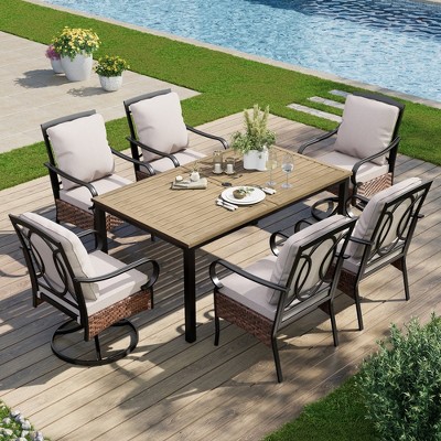 - $515.09 - $580.54reg $865.99 - $975.99 SaleCaptiva Designs 5pc Patio Wood-look Square Dining Table with Umbrella Hole & Textilene Swivel Chairs4.7 out of 5 stars with 165 ratings