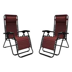 Caravan Sports Zero Gravity Recliner Lounge Chair for Indoor & Outdoor Use w/ Smooth Recline Function, & Lumbar & Head Support Pillow, Burgundy (Pair)
