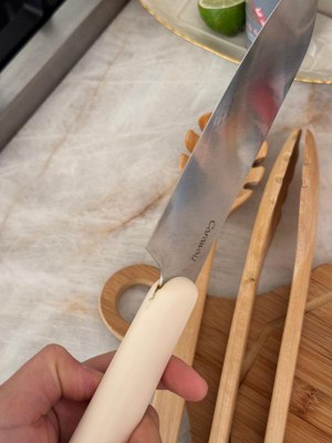 The Caraway knife and utensil set impresses with its beautiful design and high-quality materials, making it a stylish addition to any kitchen. Guests appreciate the sharpness of the knives and the sturdy construction of the utensils, which enhance meal preparation. The compact storage solution is perfect for small spaces, keeping everything organized and easily accessible. Overall, this set combines functionality with aesthetic appeal, making it a worthwhile investment for any cooking enthusiast.