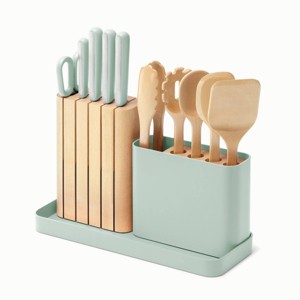 Caraway Home 14pc Prep Set Mist: Stainless Steel Knife & Utensil Set with Storage Block & Shears