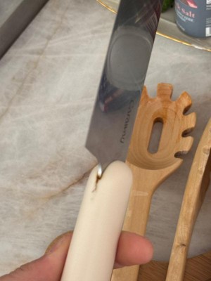 I was so excited to buy my first set of nice knives and a healthy utensil set. I am a little disappointed at the quality of the utensil set already discoloring after about a week of use but I guess thats what happens when you dont buy the stuff with chemicals sealing the color on? Not sure but either way it does look great on my counter top and since I have a smaller kitchen the knives store well in my kitchen drawer.