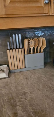 Includes: Slotted Spoon, Shears, Paring Knife, Storage Box, Knife Block, Spoon, Prep Knife, Chef Knife, Spatula, Bread Knife, Scraper, Tongs