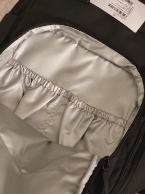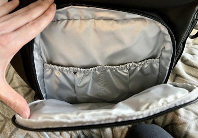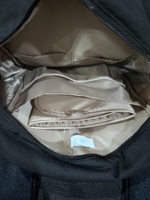 This is a really nice diaper bag. The black looks sleek, and looks nice for any occasion. It seems made to travel. There’s tons of pockets and I was impressed with how much space it had. The luggage sleeve on the back is a nice extra touch. It comes with the changing pad too!