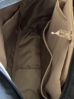 I bought this diaper bag for a trip we were taking because I knew the sleeve on the back that can slide over a suitcase handle would be really handy, and it was! This bag has been really durable. It has pockets for everything and is just the right size. My only complaint is that it doesn’t have double zippers.