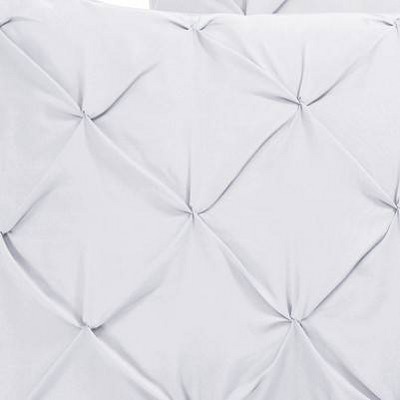 I really love the style of this bedding, and I had been looking for a nice, rich blue color for our bedroom. I currently have similar bedding in a grey color that I have had for over 4 years. Once I put the blue bedding on my bed, I realized this is the same brand as I have had for the past 4 years. The bedding has been extremely durable, and in those 4+ years only one pintuck has come undone. The blue bedding has very rich and beautiful coloring, and has more body than the other comforters I’ve tried. I am so excited about this bedding, and here’s to hoping it’s as durable as my last purchase from this brand.