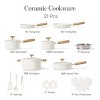 Enjoy everyday versatility with the Carote 21-Piece Ceramic Nonstick Cookware Set in cream white. The collection includes 2 skillets, 2 saucepans with lids, a sauté pan with lid, a large stock pot with lid, a steamer, plus accessories like trivets, utensils, and pan protectors. Built for healthy cooking, the PFAS-free ceramic coating offers a glossy, non-toxic surface that delivers smooth food release and easy cleanup. A dual-size silicone strainer lid makes draining simple with fine- and wide-mesh sides for different foods. The full-spray base distributes heat evenly across stovetops—including gas, induction, glass, and halogen—while simplifying cleaning. Wood-like handles are ergonomically designed for a secure, comfortable grip, and the cream white finish brings a modern, sophisticated look to any kitchen. After meals, this Carote set is dishwasher safe for quick convenience.