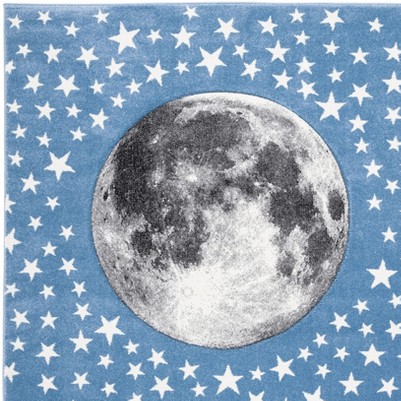 The ivory and grey color palette is both timeless and versatile, blending seamlessly with a variety of decor styles. The design showcases a magical array of stars scattered across a crisp ivory background, with a detailed and captivating portrayal of the moon at the centerpiece. This celestial theme invites dreams of space exploration and nights under the starry sky, making it an ideal addition to a kid's bedroom or play area.