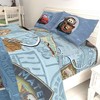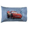 This amazing Cars bed in a bag is perfect for any young fan. This full-size set has 7 pieces. Included are 1 comforter, 1 fitted sheet, 1 flat sheet, 2 standard pillowcases, and 2 shams. The comforter measures 86 inches long by 76 inches wide. The fitted sheet measures 75 inches long by 54 inches wide. The flat sheet measures 96 inches long by 81 inches wide. The pillowcases measure 30 inches long by 20 inches tall, and the shams measure 26 inches long by 20 inches tall. This set is machine wash cold and tumble dry low. 100% polyester.