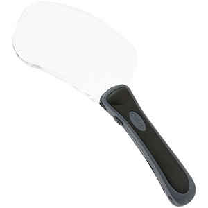 The Rectangle Rim Free handheld magnifier from CARSON is designed with comfort in mind. Its ergonomic, soft-grip handle promotes a natural hand position. A side mount switch allows you to easily turn on the built-in LED for low-light illumination. The wide lens and unique rectangular shape of this magnifier were designed specifically for line by line reading of books, recipes or your favorite periodicals.