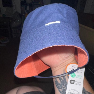 It as described, I should have read the comments first. Picture is miss leading looks like a navy blue hat but it a salmon orange pink hat with blue linings. I used target pick up otherwise I wouldn’t have purchased it.
