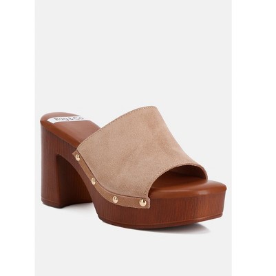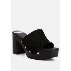 Rag & Co Womens Cartera Suede High Block Heel Clogs In Black 5