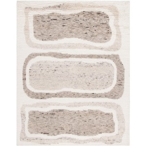 Transform your space with this exquisite hand knotted area rug, measuring 8 by 10 feet. Crafted from wool, this piece from India offers a contemporary touch with its abstract pattern and soothing ivory and brown hues. Perfect for living rooms or bedrooms, its large rectangular shape and 5/8 inch height provide both comfort and style underfoot. This rug complements a wide range of decor styles, effortlessly bringing a modern aesthetic to any room. Whether you're redesigning your home or simply adding a new accent, this elegant rug is the perfect choice.