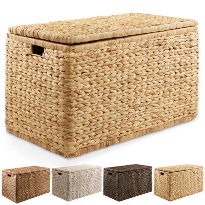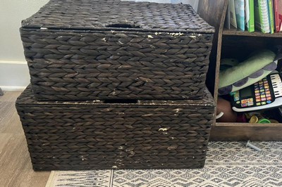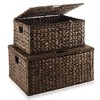 Casafield Set of 2 Water Hyacinth Lidded Storage Baskets (Medium/Large), Multipurpose Rectangular Organizer Totes