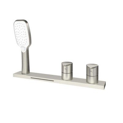 Product Name: CASAINC Pressure Balanced 2-Handle 3-Sprayer Deck-Mount Waterfall Roman Tub Faucet with Handheld Shower in. Brushed Nickel