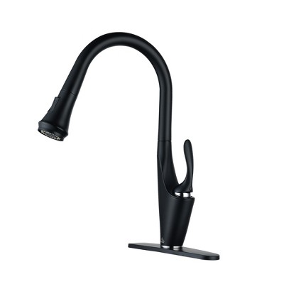 CASAINC Deck Mounted 1-Hole Single Handle Pull-out Kitchen Faucet, Matte Black
