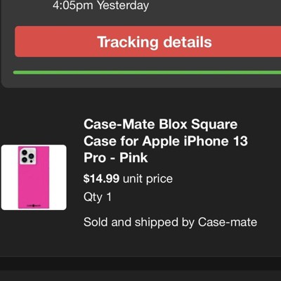 In store did not have my phone size so I ordered it in the pink blox square edges and it arrived and was the completely wrong case. I ended up receiving a mat black case with rounded corners. Since it’s listed as sold and shipped through case mate I contacted them and they said they can’t help, let’s hope target fixes this issue.
